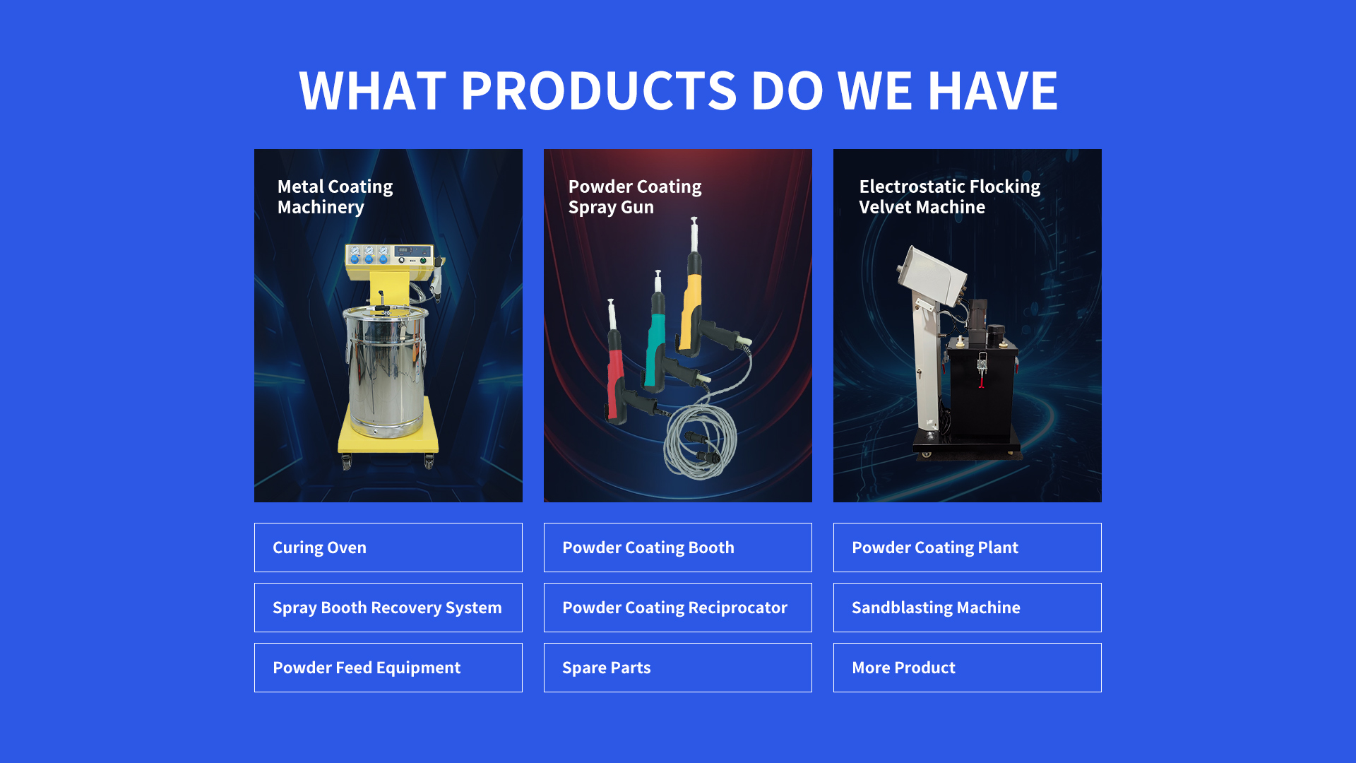 A Powder Coating Spraying Machine is a vital tool for applying dry powder coatings to surfaces. It includes a spray gun, powder hopper, electrostatic generator, and control panel.
